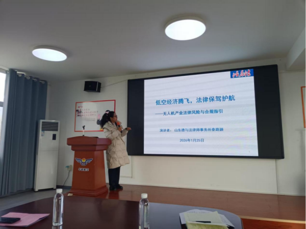 随着低空经济步入发展快车道,相关法律法规、空域管理、数据安全、责任认定等问题成为产业健康发展的关键。山东德与法律师事务所深耕新兴科技与航空领域法律服务,凭借前瞻性的行业洞察与扎实的专业积累,为与会者系统梳理了当前低空经济领域的政策框架与合规要点,强调法律风险防控与制度保障在产业创新中的基础性作用。